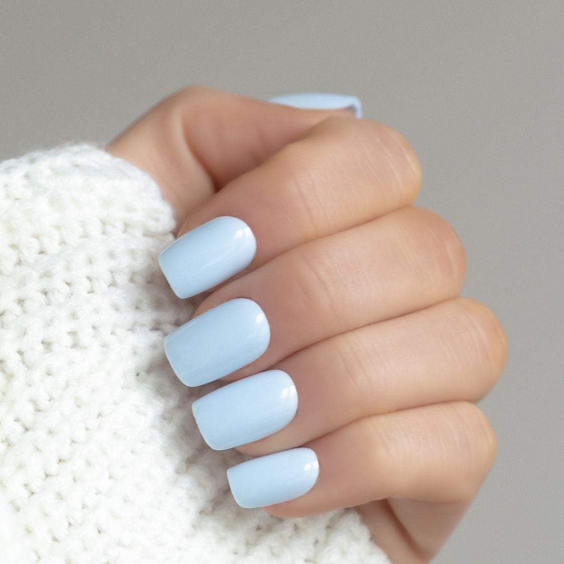 Pastelowe, błękitne paznokcie press on w kwadracie