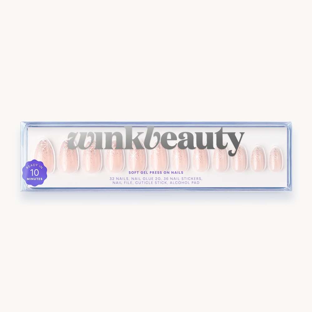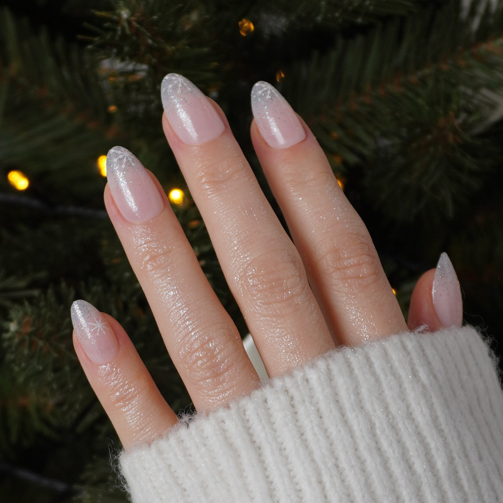 Freezing to esencja zimy zamknięta w ombré. Mleczna, miękka baza stopniowo przechodzi w mroźny brokat, dając efekt świeżego szronu — eleganckiego, ponadczasowego i bardzo „clean girl”. To idealny model na zimowy poranek, cozy weekend, świąteczną kolację czy zimowy city break. Wygląda luksusowo, a jednocześnie niezwykle naturalnie.