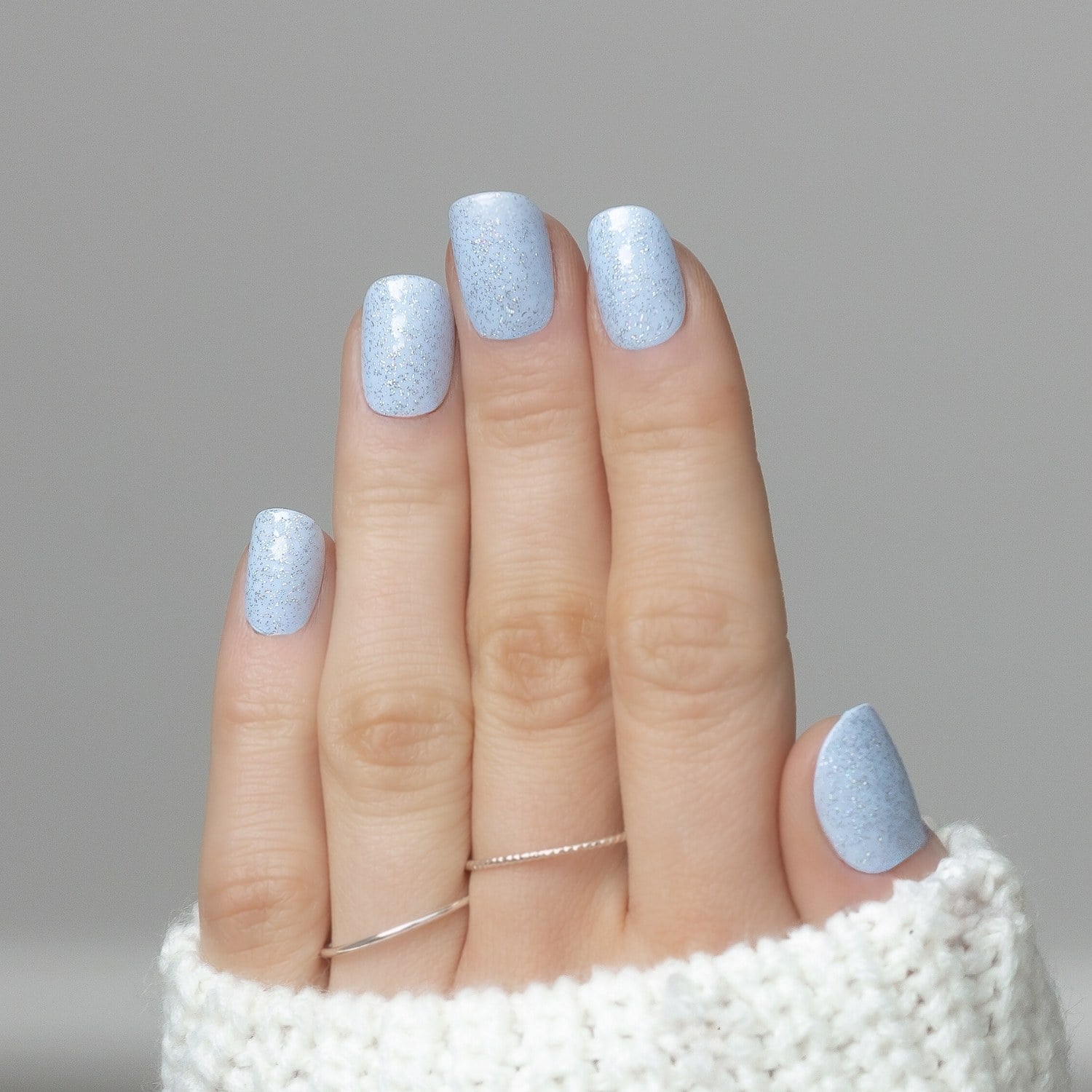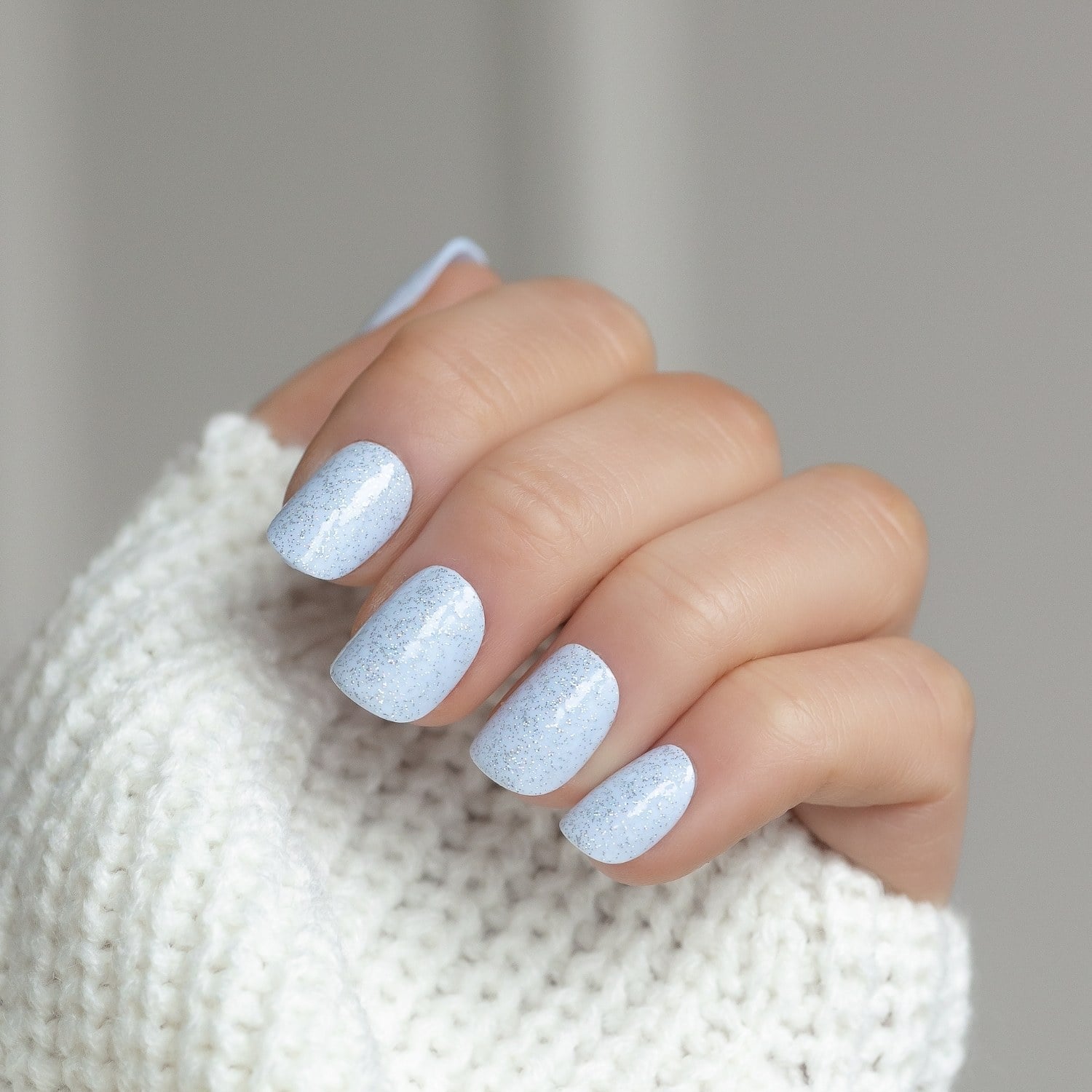 Ice Skater to pastelowy, chłodny błękit z delikatnym brokatem — inspirowany światłem odbijającym się na lodzie. Delikatny, świeży, czysty, idealnie zimowy. Występuje w naszej bestsellerowej długości short, dzięki czemu jest niesamowicie praktyczny i komfortowy na co dzień: do pracy, na studia, na spacer, do rękawiczek i na zimowe wyjazdy.