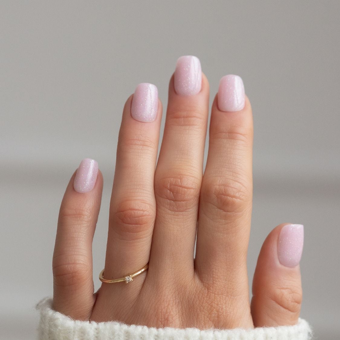 Kwadratowe, różowe paznokcie press on z brokatowymi drobinkami!