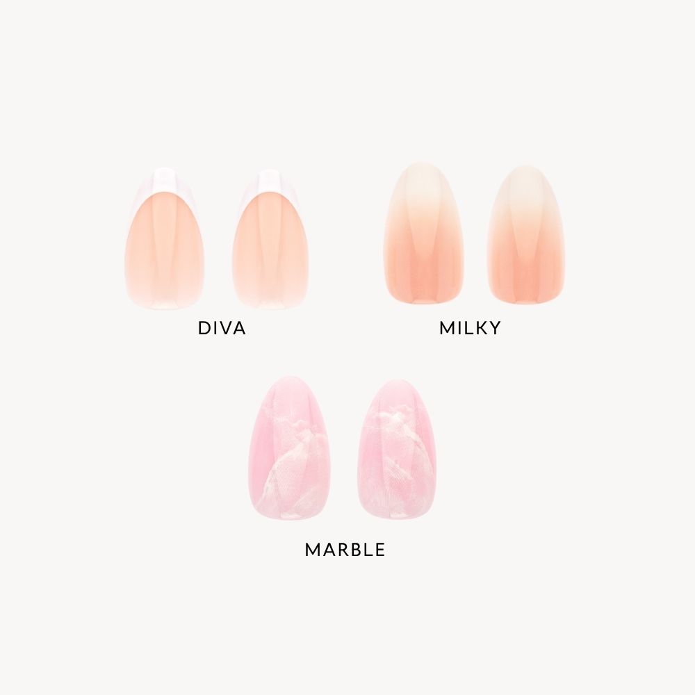 3 modele paznokci: Cherry Lady, Noir Bow, Glass of wine Każde opakowanie zawiera:Zawartość zestawu